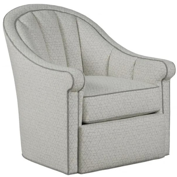 This transitional swivel chair has a deeply contoured channel back that fans all the way to the arms. A welted border surrounds the arm and curves back. The rounded arm fronts add a unique style.Read More