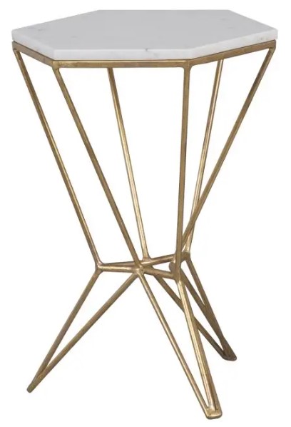 Update your living room with the La Bella White Accent Table. This hexagon-shaped accent table features a natural white marble top with metal-base legs that add an elegant touch. Elevate your living area by incorporating this accent table into your home.Read More