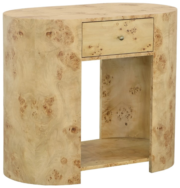 The Sequoia Collection features Mappa Burl veneers. Mappa Burl is a highly decorative veneer in light brown heartwood is peppered by an unusual darker, bark-like pattern of tight clusters. As Mappa Burl is a natural product from individual trees, each cut of veneer will vary slightly. Sequoia draws upon transitional designs and shapes.
