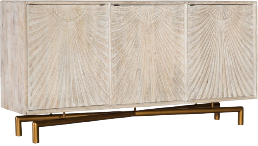 Exuding a resort feeling, this Entertainment Console pairs a creamy neutral rustic light wood finish with antique bronze metal finger pulls and a metal base. Crafted of Mango Wood and iron, there’s one removable shelf behind each door and a ventilated back panel. Accommodates a 70-inch TV.Read More