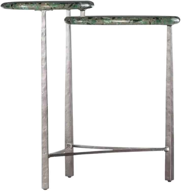 Finish: Textured pewter metal base with stone tops with green, black and charcoal bits