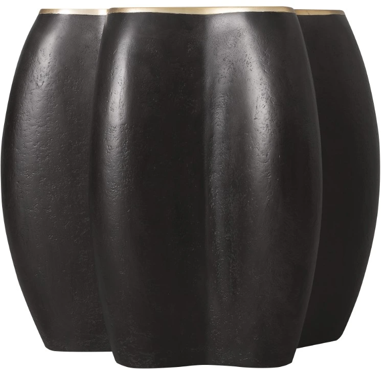 Organic in form and luxe in material, the even and flow end table features a gold-leaf top with inset glass and a rich black sculptural base. A true showpiece for transitional or eclectic interiors.Read More