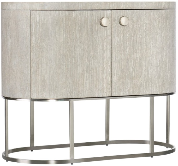 Architectural and timeless with a luxe mixture of materials, the Modern Mood oval nightstand is a statement piece. The shaped metal base gives the nightstand a floating appearance. Crafted with quartered oak veneers, the piece is finished in a serene, crystal-like diamond color.Read More