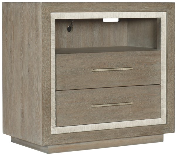 In a crisp two-tone finish combining a gray washed oak with a contrasting textured light gray color, the Serenity Balboa two-drawer nightstand brings the organic textures of cottage waterfront living to your space. Crafted of oak veneers and resin, the nightstand has two drawers with soft-close drawer guides and an open area above the drawers.Read More