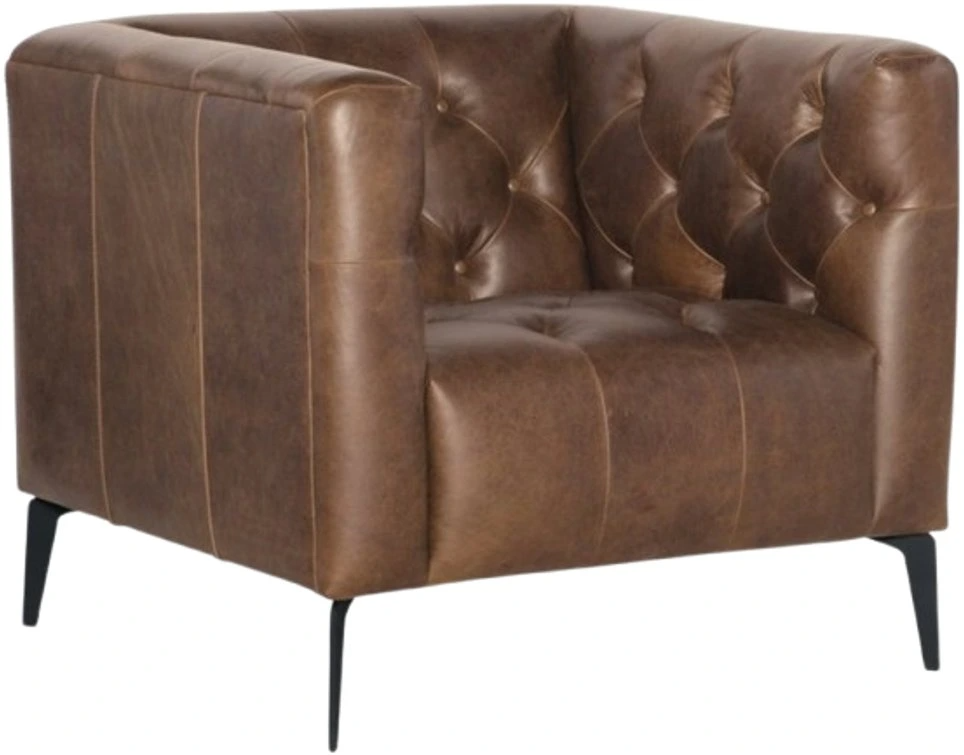 Urban, modern, and timeless, the Nicola leather stationary chair has low slung arms, tufted tailoring, and slim metal legs. The upscale saddlebag lodge aniline leather with authentic character is the distinctive cover. Developed by one of America's premier manufacturers to offer quality furniture at affordable prices.Read More