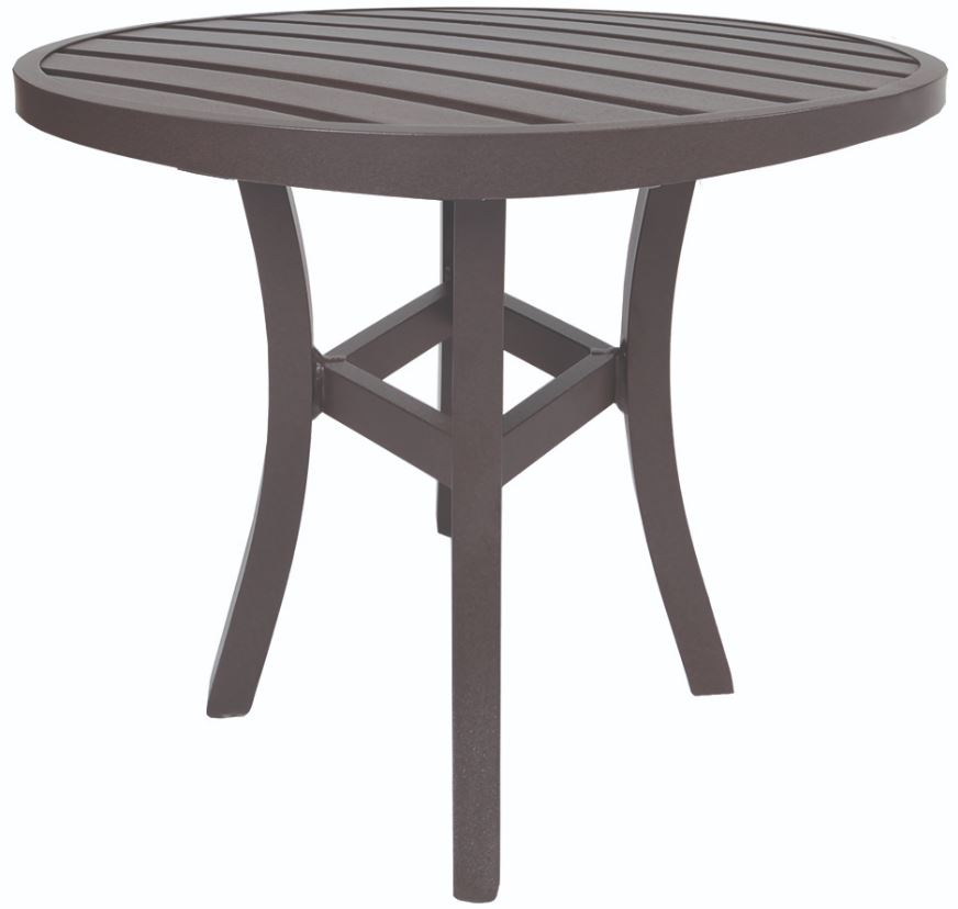 Features: Aluminum slat top: fully-welded and assembled Seats 4. 2” Umbrella hole.