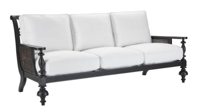 Features: Classic West Indies look with paddle arms and cane weave arm panels. Cast aluminum legs and arms. Wrought aluminum décor on back panels.
