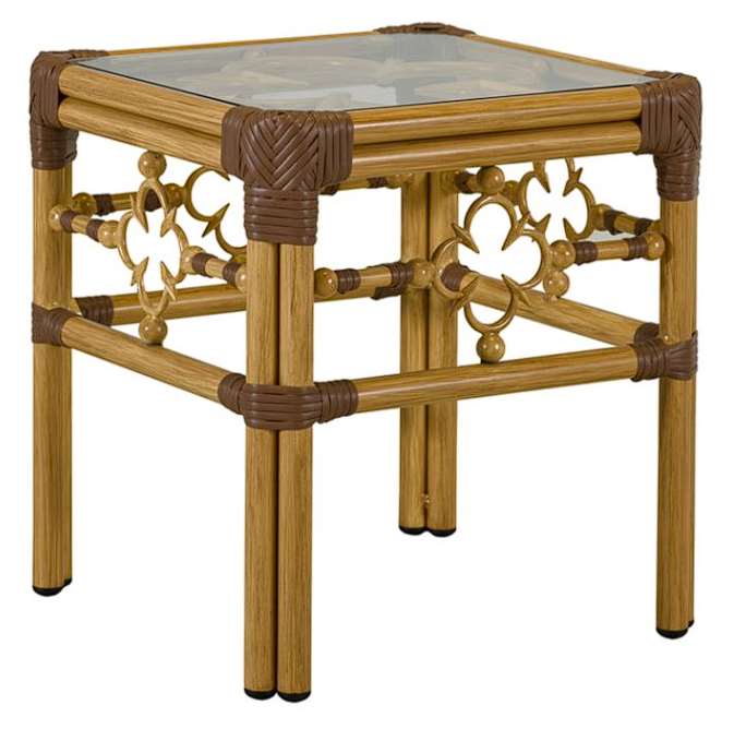 Features: Distinct Quatrefoil design. Clear, heat-resistant tempered glass inset over table top.