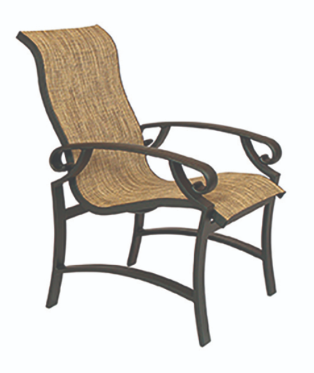 Shown in a brown frame, the Monterey Sling High Back Swivel Dining Arm Chair is made from fabric. Complete your dining room setup by incorporating this chairs into your home. Available in all LANE VENTURE sling fabric options.Read More