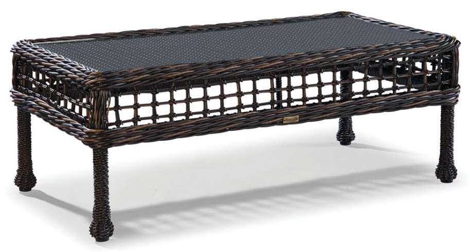 Features: Airy, timeless classic design. Hand-woven open-lattice frame design. Clear, heat resistant tempered glass is inset over hand-woven top.