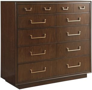 The Ascot gentleman? chest features ten drawers for ample storage, with cathedral walnut faces, custom drawer pulls in rose gold, and side hung drawer guides. The plinth base gives the design a floating appearance.Read More