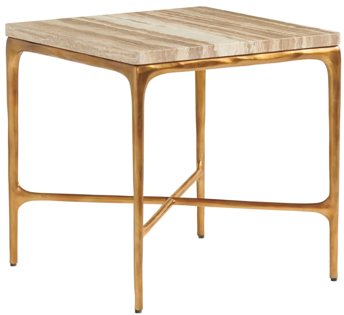 The Menlo Park end table features hammered and hand-wrought metal bases in a maritime brass finish over silver leaf. Exotic tiger brown travertine tops add exceptional interest, with natural vein patterns that are unique to each piece.Read More