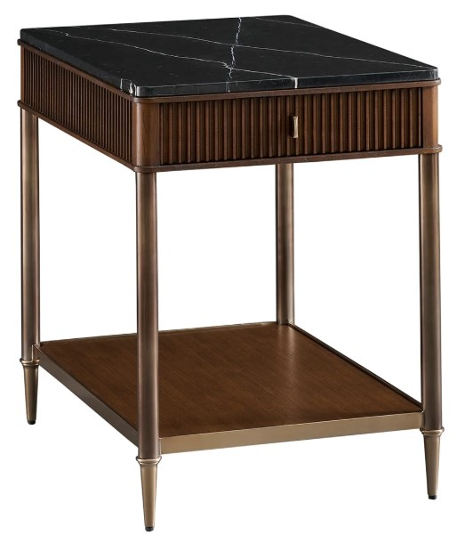The Adam end table is a traditionally styled piece that seamlessly blends mixed materials for a refined look. This versatile end table features reeded walnut door fronts adorned with satin brass accents, making it an elegant addition to any living room or bedroom.Read More