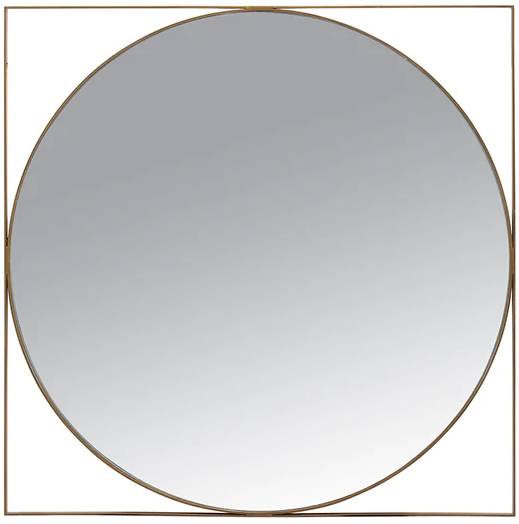 All welded circle-in-a-square designed mirror with a matte brass finish and clear mirror surface. A stunning blend of craftsmanship and luxury. This mirror brings a touch of artisanal beauty to any room, reflecting both style and craftsmanship.Read More