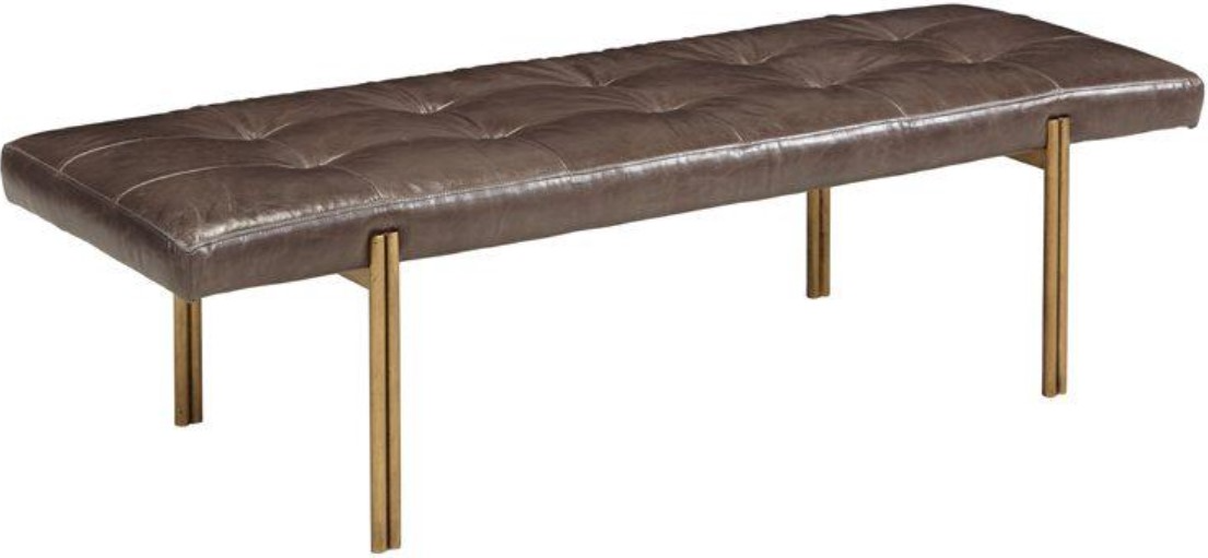 The warm leather top and aged gold metal legs make this sleek bench the perfect compliment for any interior design style. It features a box seam and tufted top, and is available in multiple leathers.Read More