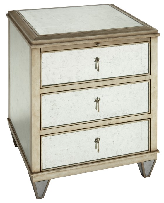 The Jolie Bedside Chest by Lillian August for Hickory White presents a glamorous 1940s Hollywood regency vibe, finished in hand-applied estate silver leaf with stunning eglomise mirrored paneling and polished nickel hardware.Read More