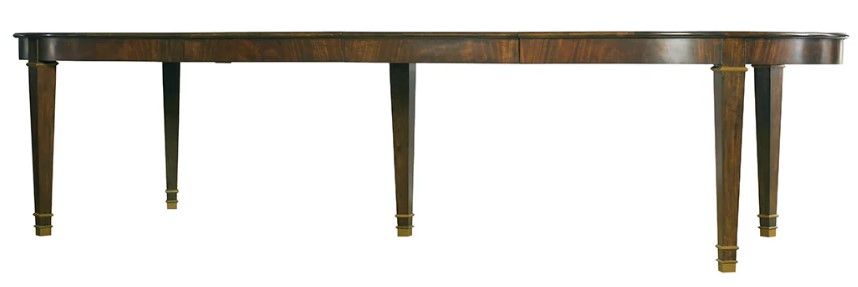 A subtle yet elegant European inspired design, our Templeton dining table is hand crafted from solid wood with fine book matched crotch mahogany veneers. The racetrack oval tops has two 24" leaves and opens to 126”, allowing it to sit up to 12 people for your family gatherings.Read More
