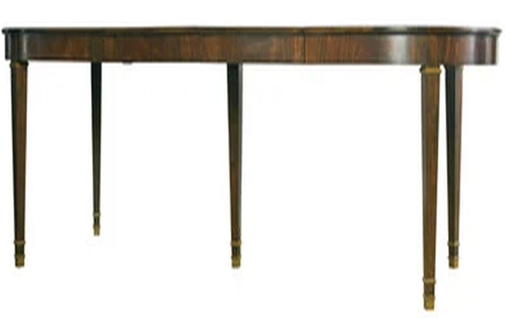 The Templeton Dining Table provides a bold backdrop to your dining space. The European elegance is showcased in this piece with its tapered legs and gold accents. It includes two leaves for a roomier dining experience, extending up to 126 inches with two 24 inch leaves.Read More