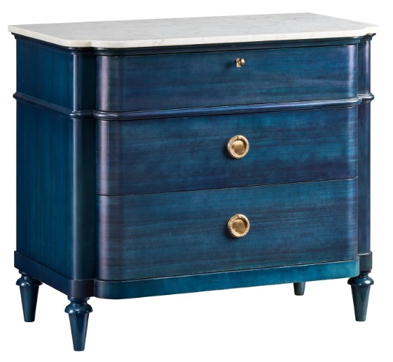 Our elegant bow front Vivienne nightstand is inspired by traditional art deco design. Its generous scale can stand on its own or combine with our popular matching Vivienne dresser. Constructed in refined beech wood, with a honed white carrera marble top, it is shown in our exotic India Ink finish.Read More