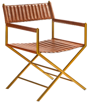 Bauhaus inspired director's chair in brown tobacco leather and metal frame