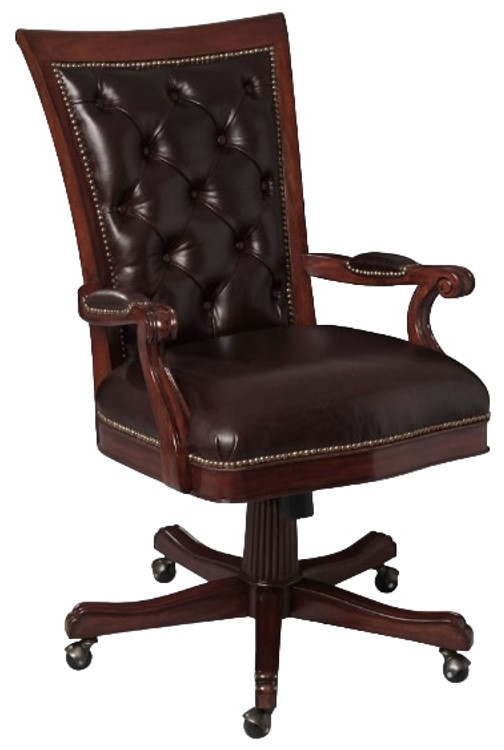Introducing the Antonio Desk Chair: A sleek addition to any workspace, featuring casters for mobility and upholstered in rich brown leather. This chair seamlessly blends comfort and style, enhancing your productivity while adding a touch of sophistication to your office décor.Read More