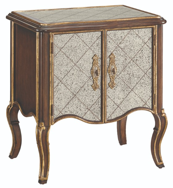 Top and door of this nightstand are plated in 5mm antiqued Regency Glass