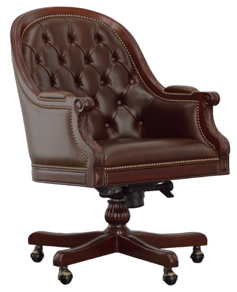 Introducing the Marcio Desk Chair: Upholstered in dark brown Italian leather, this chair combines luxury with functionality. With its tufted detailing and swivel feature, it offers both comfort and versatility, making it the perfect addition to any stylish workspace.Read More
