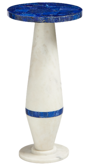 The Maitland-Smith® Polished Lapis Martini Table showcases a striking lapis lazuli top against a sleek white base, creating a captivating contrast. This elegant piece is perfect for serving drinks or displaying decor, adding a sophisticated touch to any room with its vibrant colors and refined design.Read More