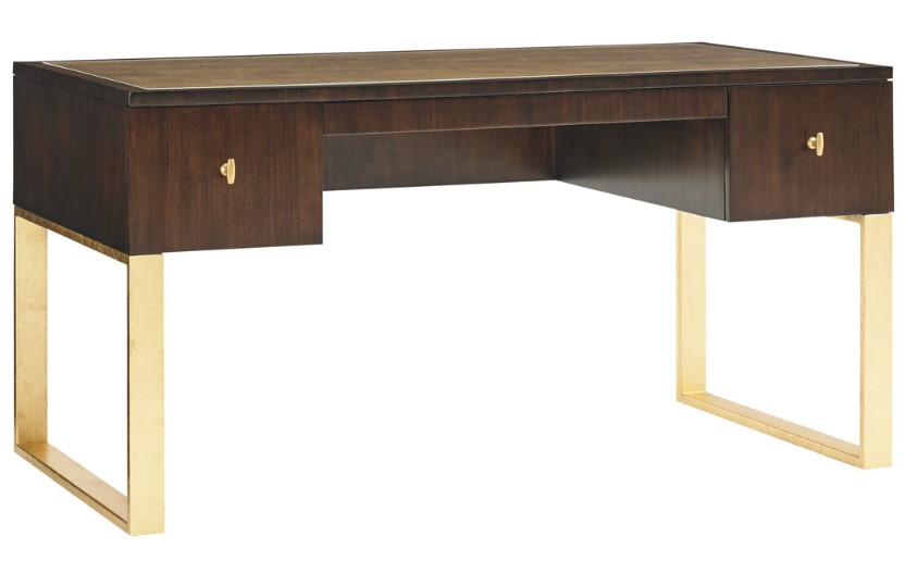 Functional as it is glamorous, the writing desk features sophisticated gold leaf accents and clean contemporary lines. It has three full extension drawers with cord management and a divided pencil tray in the center drawer.Read More