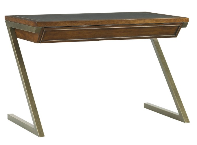Inspired by the next generation, the metal Z legs create interest, yet provide ample support. The single box drawer includes a pencil tray to stay organized and close at hand and the leather top is a perfect work surface.Read More