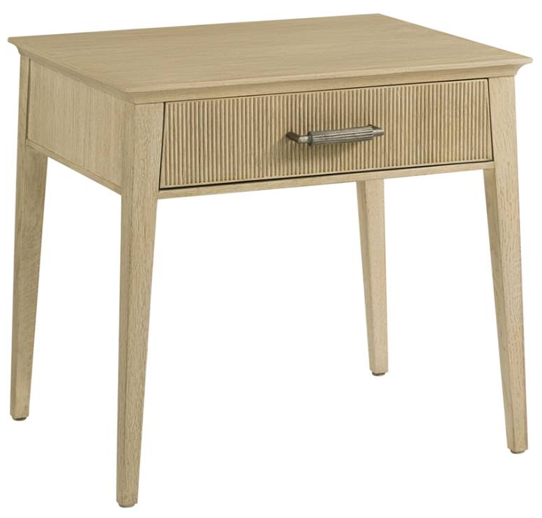 The one-drawer Balboa Side Table features a sophisticated tapered silhouette. Beautifully complemented by reeding and dark nickel hardware. Finished in Coastal Grey. Make a statement by incorporating this side table into your home.Read More