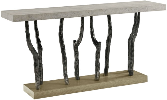Elevate your entryway or living room with the sleek Theodore Alexander Catalina Branch Console Table. Crafted from figured ash, this contemporary console table is available in Dune or Earth finishes. The cast metal legs in Volcanic finish provide a striking contrast, while the stone-like porous Mineral Finish on the top adds a touch of elegance.Read More
