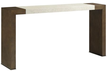 Modern parsons style console table made of figured ash in your choice of Dune or Earth with our exclusive Mineral finished top and metal detail at the base of the legs in a bronze finish. Its slim profile makes it ideal for entryways or living areas.Read More