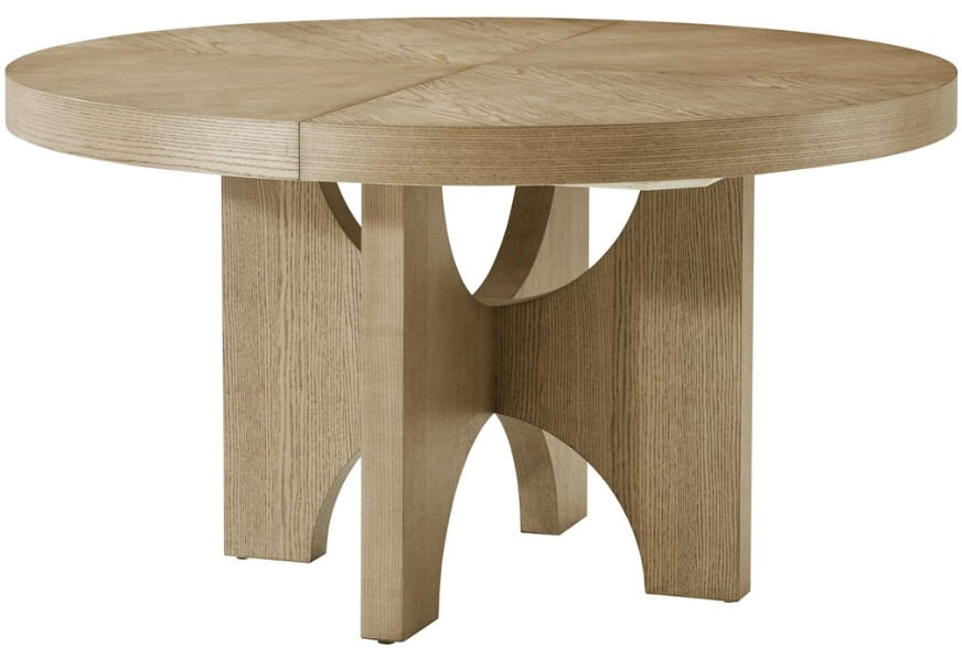 Modern extension dining table made of figured cathedral ash in your choice of Earth or Dune finished with one 18" leaf. The Theodore Alexander Dining Table is built with expert craftsmanship and high-quality materials. It offers a sturdy and spacious surface, perfect for family meals or gatherings. Designed for everyday use, it combines practicality with lasting value.Read More