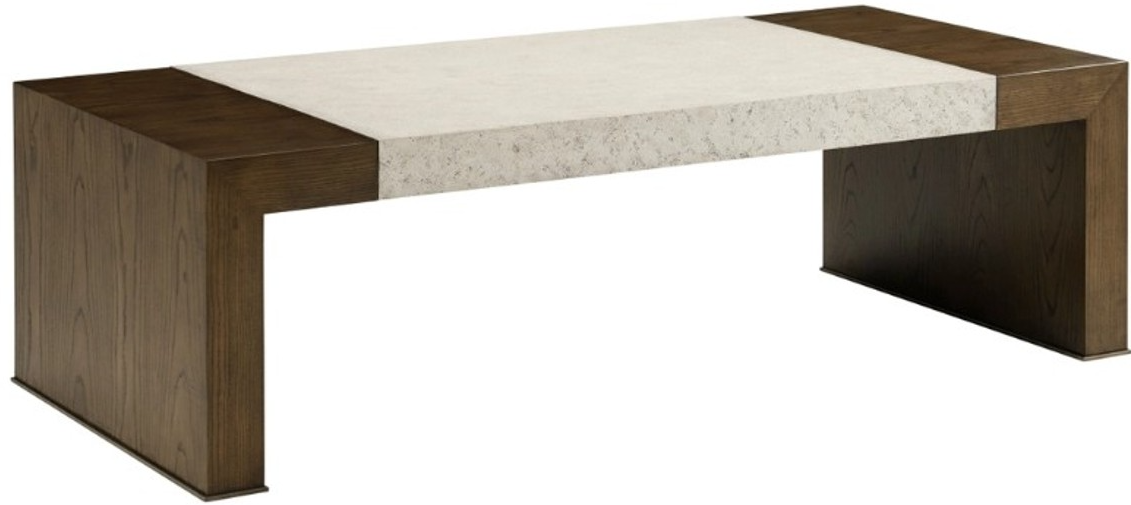 Modern parsons style cocktail table made of figured cathedral ash in your choice of Earth or Dune with our exclusive Mineral finish at the top and metal detail at the base of the legs in a bronze finish.Read More
