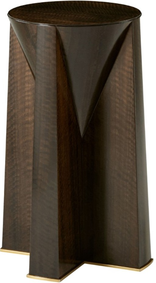 A beautifully crafted and delicately fumed eucalyptus table with a stable cone top featuring eucalyptus veneer. Supported by 4 Cross-section feet with distinct brass appointments on its base. Make a bold statement by incorporating this stunning furniture into your home.Read More