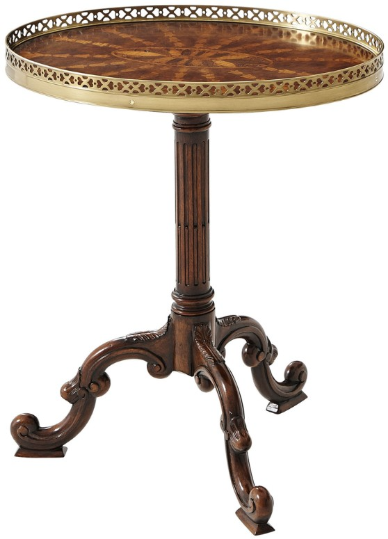 A mahogany and burl sunburst parquetry oval lamp table, with brass gallery and fluted column, on ‘C’ scroll legs. The original George III. Its detailed parquetry top adds character, while the sturdy build provides a useful surface for daily items, making it a functional addition to various rooms in the home.Read More