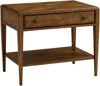 The Nova dusk drawer side table by Theodore Alexander features a distinctive oak parquetry top and lower shelf in a rich Dusk finish. Rustic tapered oak legs add character, while a discreet drawer provides functional storage. This piece blends craftsmanship with contemporary rustic charm.Read More