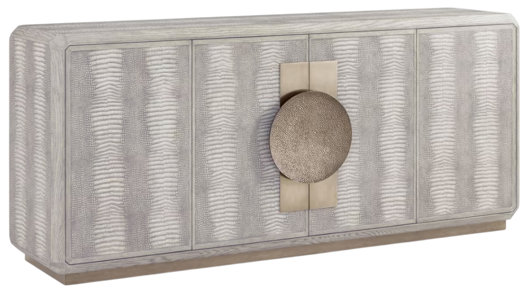 The spencer St. James collection blends contemporary flair with exquisite creativity and detail. Made of oak and adorned with crocodile-embossed leather and hammered metal hardware, spencer St. James creates a textural statement. Available in a light argento or dark onyx finish.Read More
