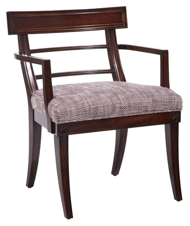 A classic klismos form, the Lawrence chair features English Regency details with a channel reeded frame on the upper back, recessed back rails with channel detail, and recessed rosettes above slim slightly curved legs. An upholstered seat features an outer welt for comfort.Read More