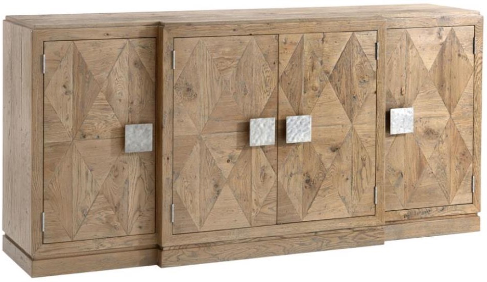 Beautiful breakfront cabinet with oak & rustic oak parquetry seen here in our 'echo oak' finish with four doors with bold 'vintage' metal handles and a plinth base. Make a bold statement by incorporating this stunning furniture into your home.Read More