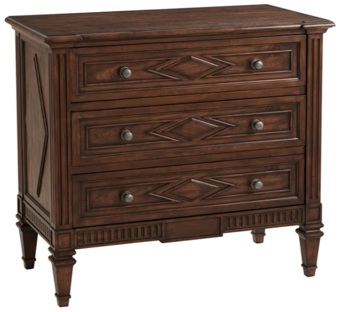 Three long paneled drawers with lozenge detailing & antique pewter handles