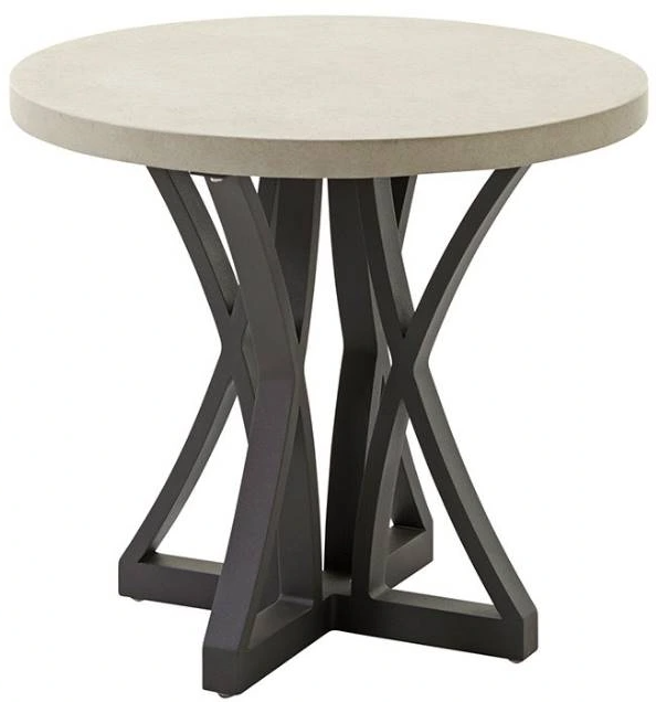 This occasional table reflects the dining tables with the weatherstone top and interesting aluminum base of joined angles. The custom aged iron finish on the base complements the honed travertine appearance of the top.Read More
