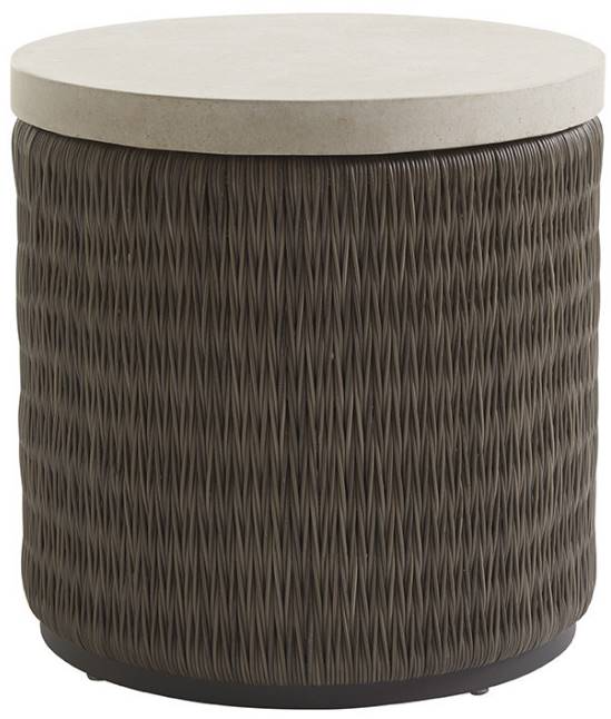 Enjoy the rich driftwood gray all-weather woven wicker paired with the weatherstone top, which appears as honed limestone. The design is sophisticated casual, appropriate for any outdoor oasis. Its round silhouette and mixed-material design offer coastal elegance and all-weather functionality for refined outdoor spaces.Read More