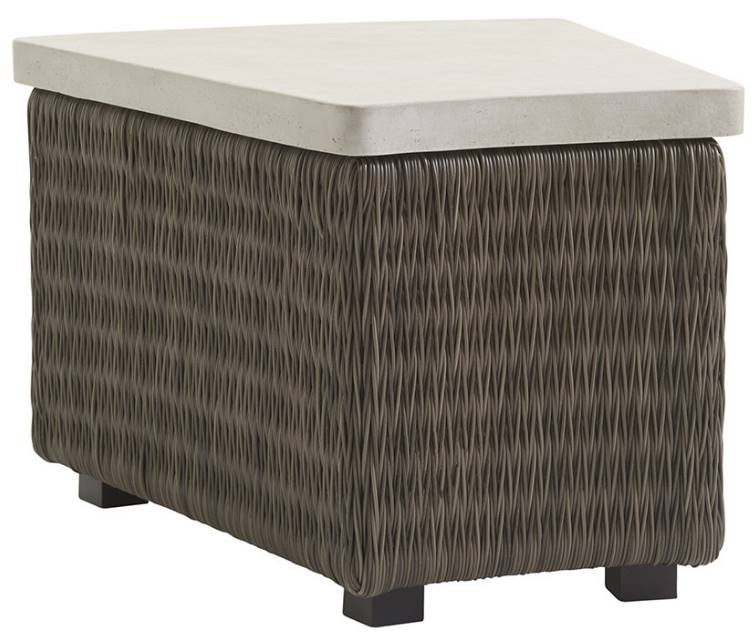 We designed this wedge table for our curved sectional frames to continue the flow while providing the surface area for refreshments or outdoor decor. The weatherstone top appears as honed limestone attached to a v-pattern woven wicker base, yet they are ideal for the outdoor elements.Read More