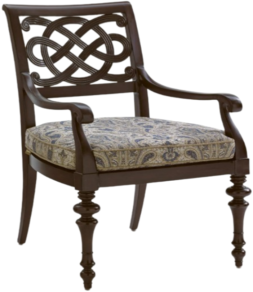 The Tommy Bahama® Outdoor Royal Kahala Black Sands Dining Arm Chair has turned legs and an intricate pattern achieved through aluminum cast molding results in a refined dining chair that ties in perfectly with either the round or rectangular dining table.Read More