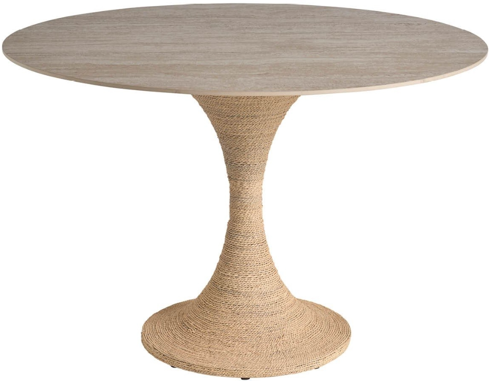 The Oasis dining table features a 44-inch round stone top in travertine beige, beautifully supported by an hourglass-shaped base wrapped in natural abaca. This 30-inch height dining table creates a stunning focal point that brings organic texture and coastal sophistication to your home.Read More