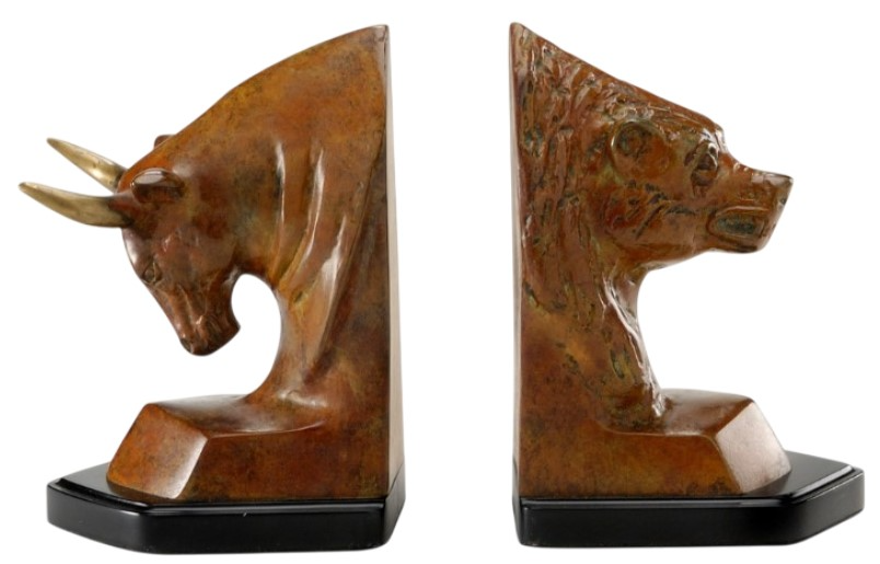 The Wildwood Lamps 2-Piece Brown Bull and Bear Bookends Set features intricately designed bull and bear sculptures, offering a bold and stylish way to organize books. Finished in rich brown tones, these bookends add a unique, timeless touch to any desk, bookshelf, or office space.Read More