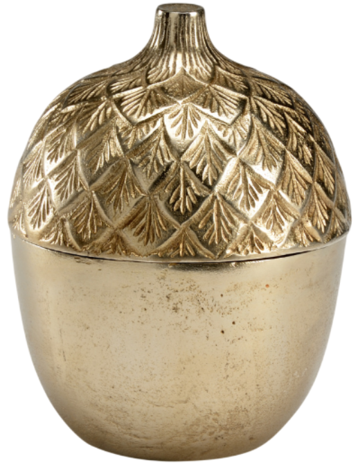 Acorns are not just for squirrels, this charming Autumn Acorn Caddy is for the avid nature lover. Crafted of cast aluminum this nature inspired accent has an antique champagne finish creating a transitional look. The textured cap of the acorn may be removed to store small personal items.Read More