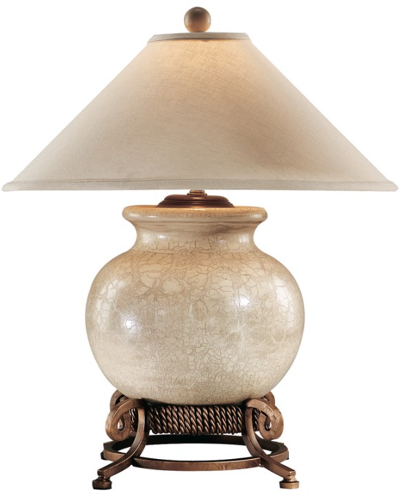 Complete your home with beautiful piece that are more than meets the eye. Featuring an antique crackle porcelain urn with wrought iron stand, the table lamp brings a touch of elegance to your home.Read More